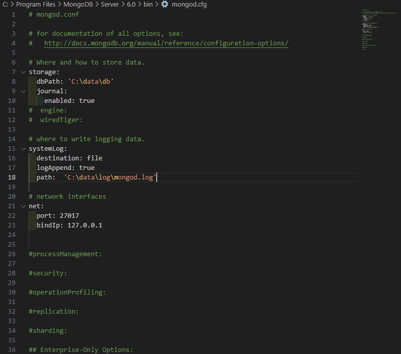 mongod --config "C:\Program Files\MongoDB\Server\6.0\bin\mongod.cfg" --install