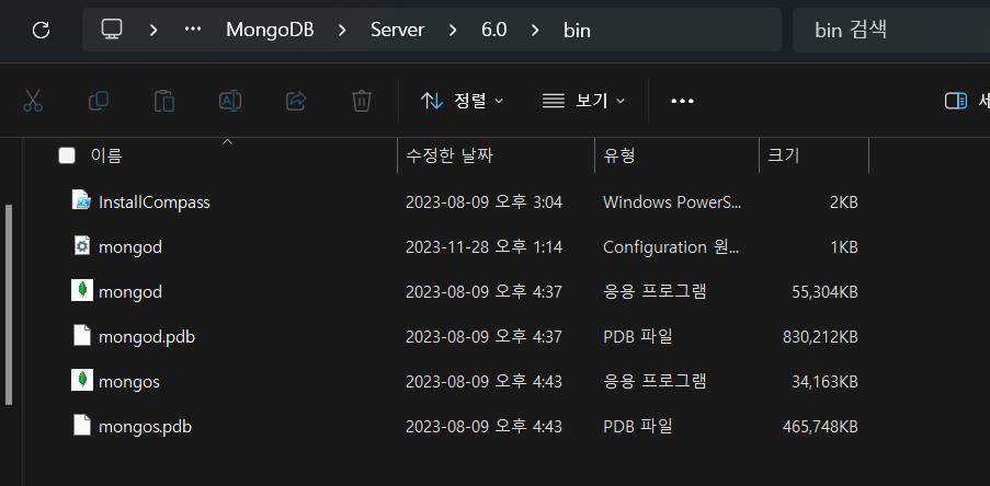 - 몽고디비 경로 : C:\Program Files\MongoDB\Server\6.0\bin