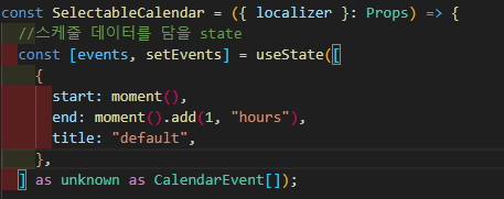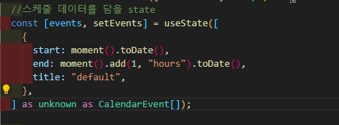 - calenderEvent의 start와 end의 타입이 Date로 되어있다.