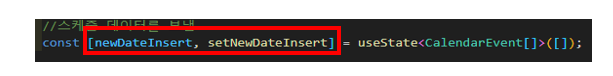 - 이전 코드는 파라미터를 백앤드에 전달할 dateInsert함수를 캘린더 클릭 이벤트시에 호출하게 하였지만,