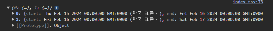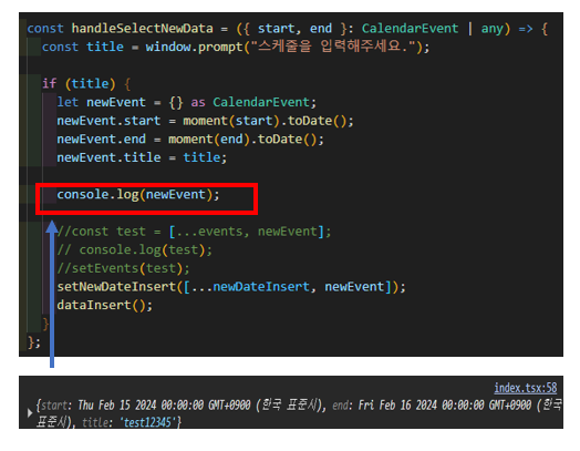- 하지만 밑에 스케줄 데이터를 state값에 넣어서 전달될 때에는 값이 뜨지 않았다.