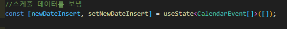 - Calender 작업중 데이터를 useState의 배열로 담아 파라미터로 백앤드에 보내야 되는데, 전달이 제대로 되지 않았다.