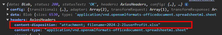 - 백앤드 로직에서는 아래와 같이 넣어주고 있지만, console.log에 Content-Disposition이 보이지 않는다.