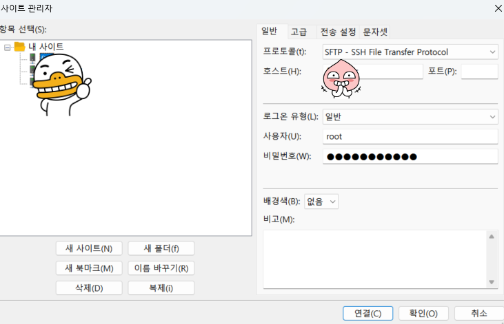 - 프로토콜은 SFTP를 클릭하면 디폴트로 포트가 22번으로 된다.