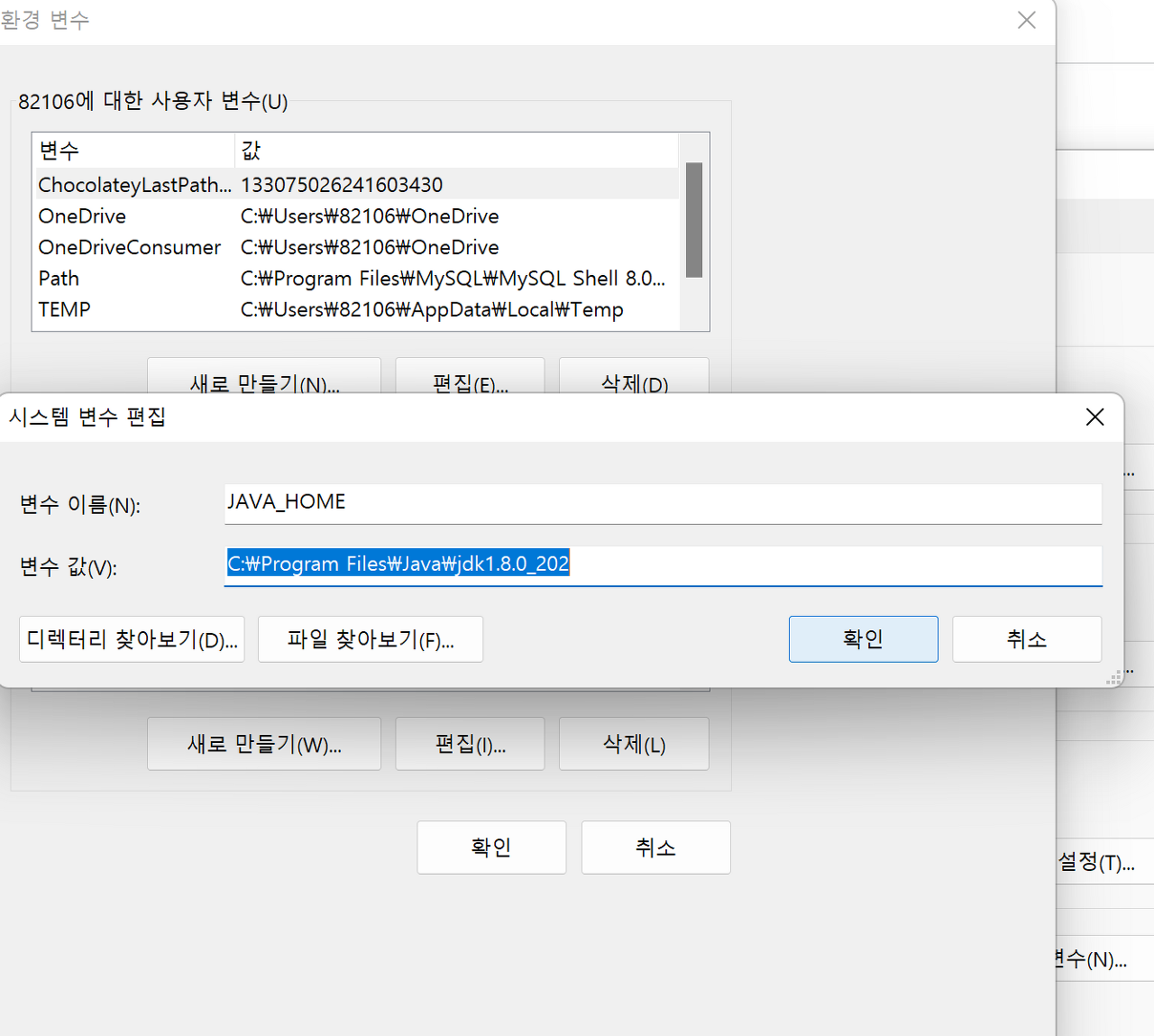 변수 값 : jdk가 있는 폴더 경로 (디렉토리 찾아보기)
