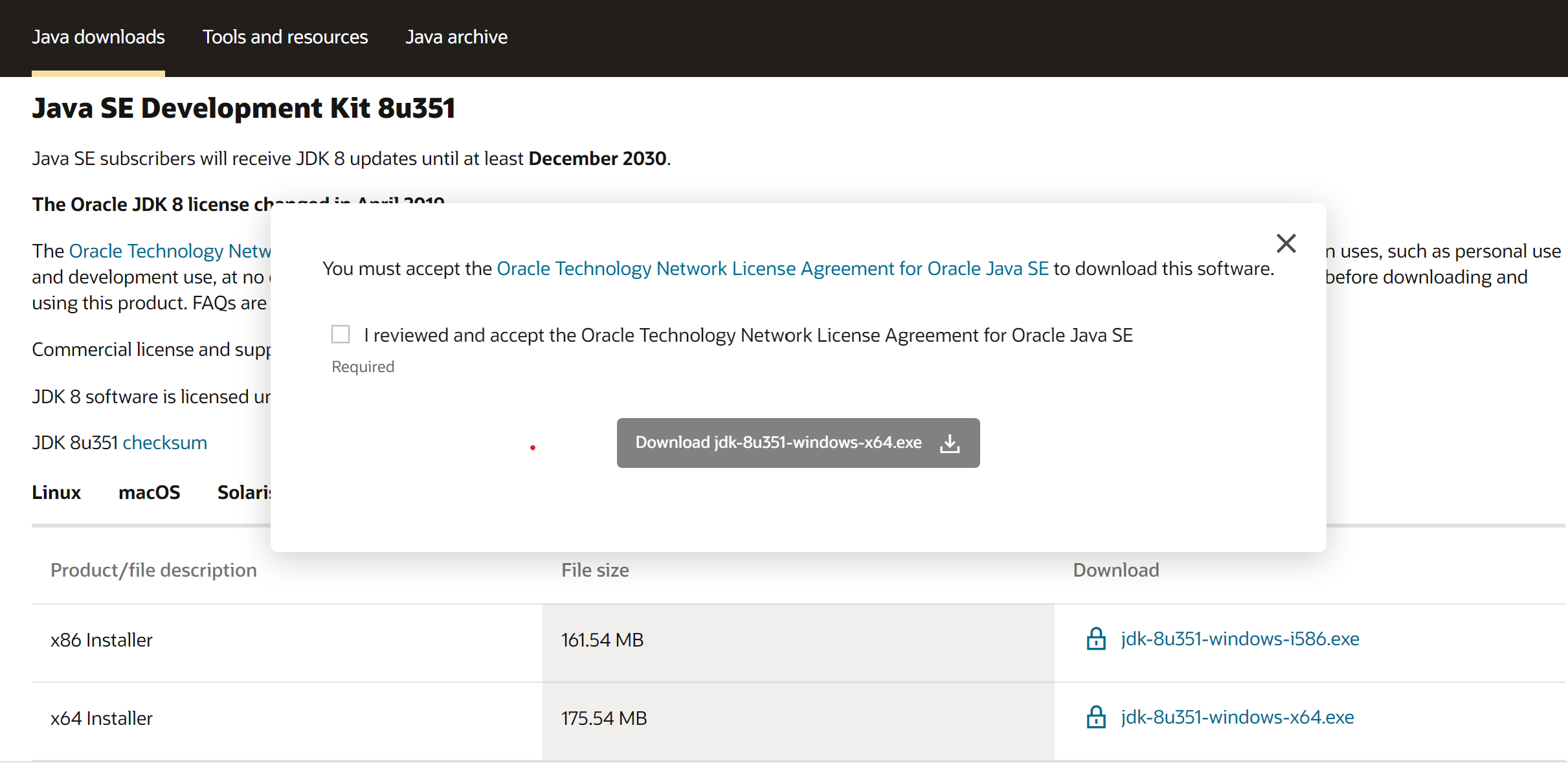 오라클 사이트 접속 후 Java downloads - 각 운영체제에 맞는 버전 다운로드