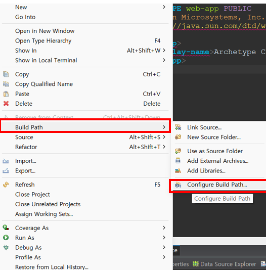 프로젝트 우클릭 > Build Path > Configure Build Path 클릭