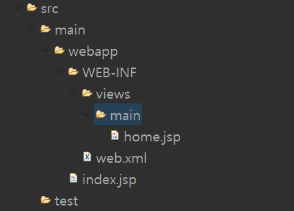- WEB-INF/views/main 폴더를 생성 후 아래에 home.jsp 파일을 생성하여 준다.