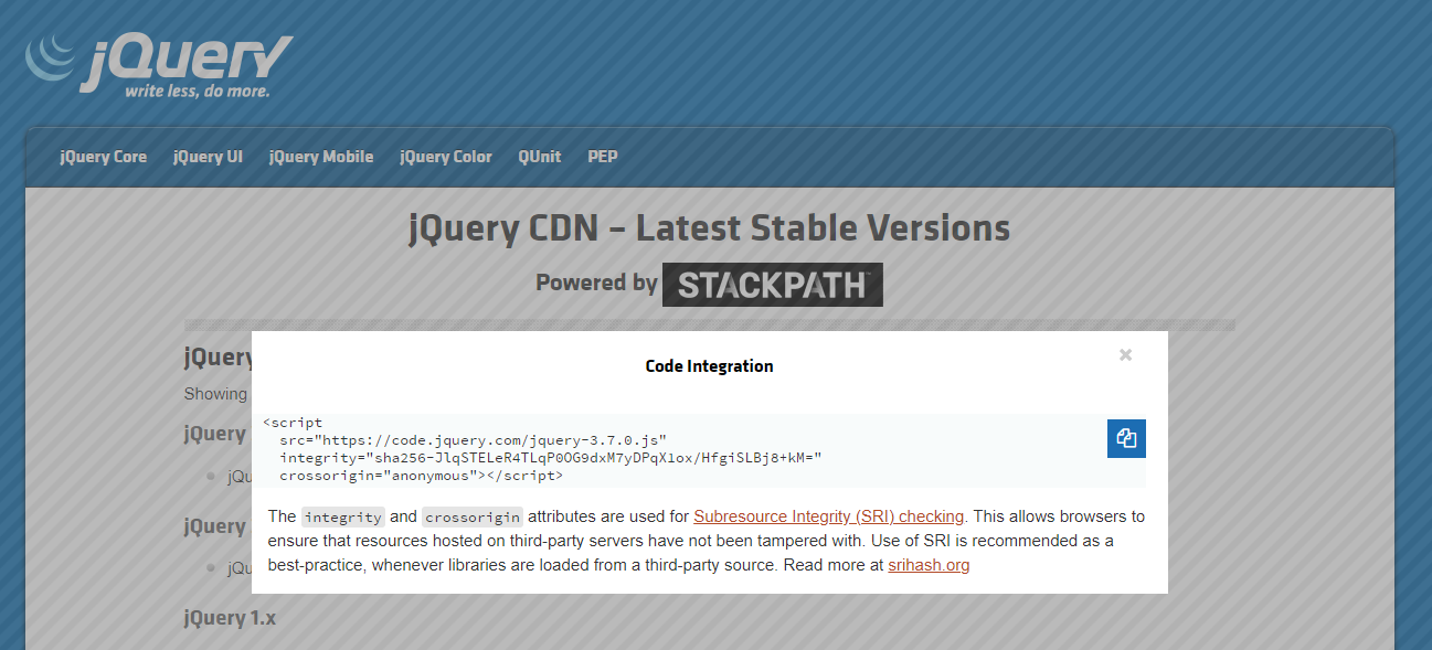 Uncompressed 링크를 클릭하면 아래와 같이 복사할 CDN 정보가 팝업으로 출력됨.