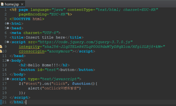 해당 문서에서는 제이쿼리 라이브러리를 적용함으로써 화면 내 버튼 이벤트 등을 처리하는 테스트 방법에 대해 설명한다.