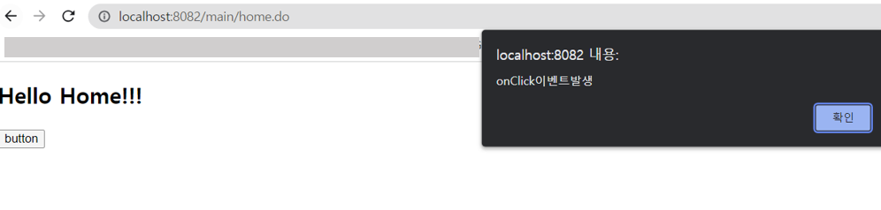 라이브러리 사용 테스트를 위해 버튼 1개를 화면에 출력하고 해당 버튼에 클릭 이벤트를 적용하여 버튼 클릭시 알럿 메시지를 출력해 보는 것으로 함.