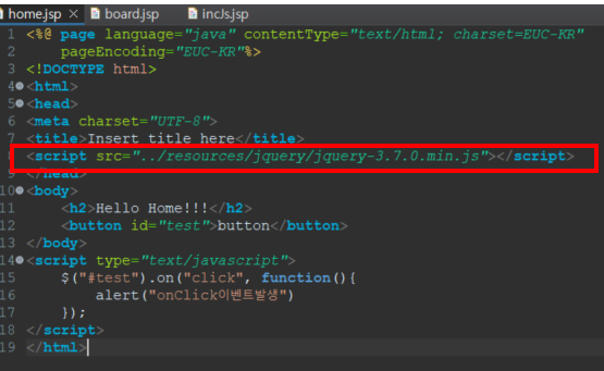 1. 컨트롤러 호출을 통한 페이지 접속까지 테스트를 완료한 이후 제이쿼리를 연동해보고자 한다.