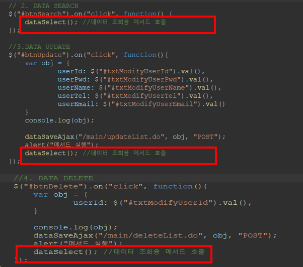 dataSelect(); //데이터 조회용 메서드 호출