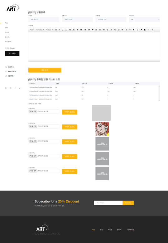 ART 상품 등록을 위한 상품 페이지를 개발함.