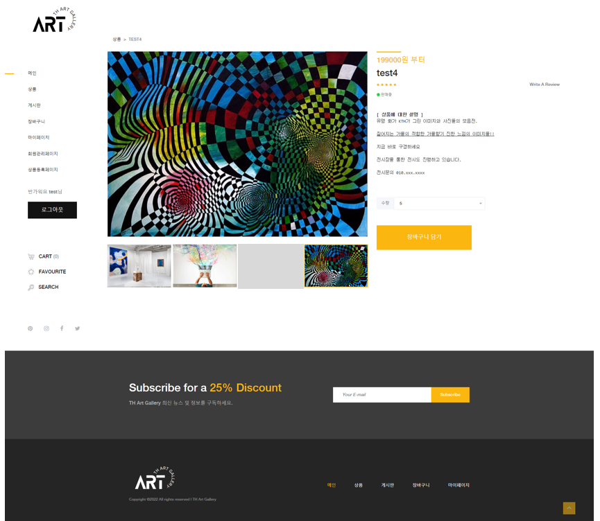 상품에 대한 이미지들을 통해 슬라이드 이미지 효과도 적용.