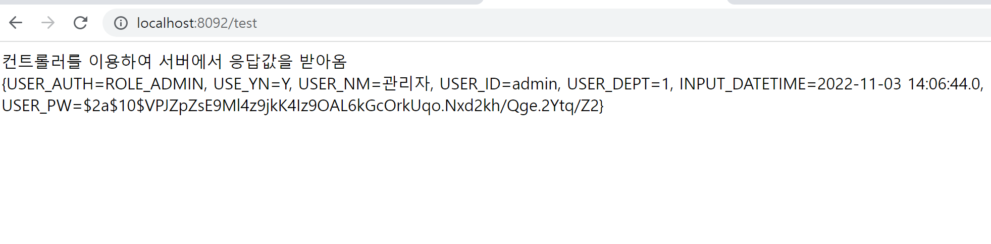 브라우저 접속에 http://localhost:8092/test 로 접속