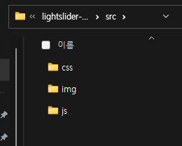 /resources/lightslider 폴더를 생성한 후 css, img, js 폴더를 복사하여 넣는다.