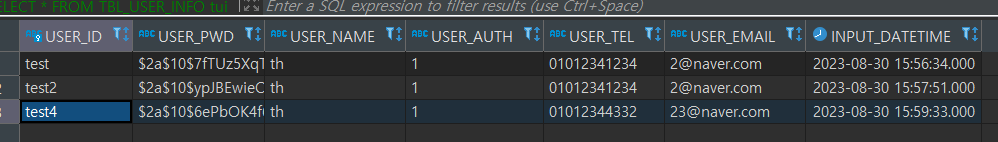 - 사용자 정보를 저장하기 위한 데이터베이스 테이블을 1개 생성한다.