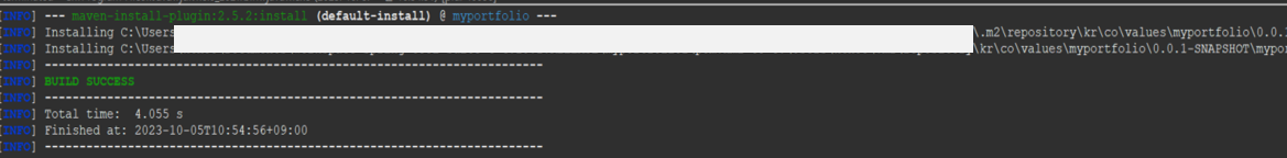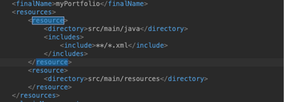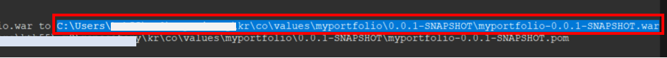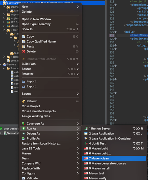 228 라인 쯤에 파이널 네임이 "<finalName>myPortfolio</finalName>" 와 같이 수정되어야 한다.