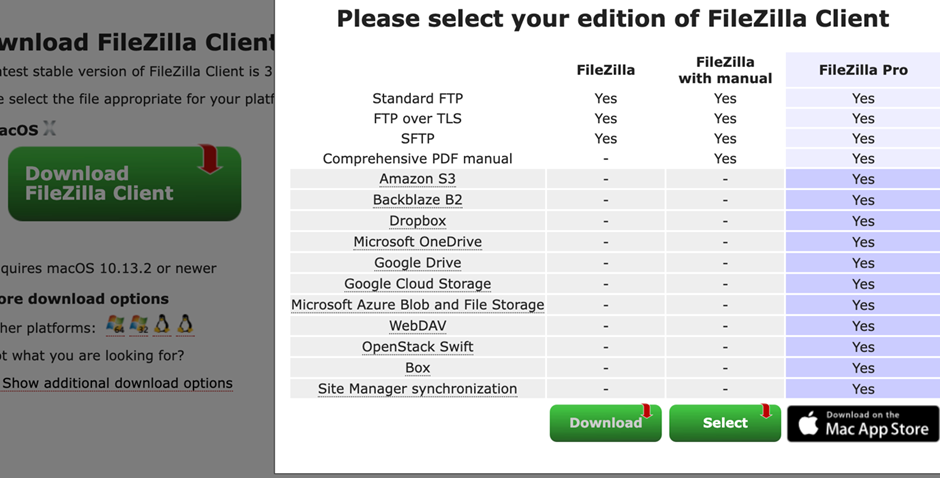 첫번째 항목인 FileZilla > Download 버튼 클릭하여 다운 및 설치 진행