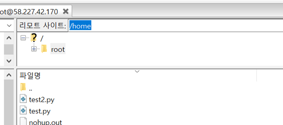 리모트 사이트에 /home 을 입력하고 엔터키를 치면 폴더 이동이 된다.