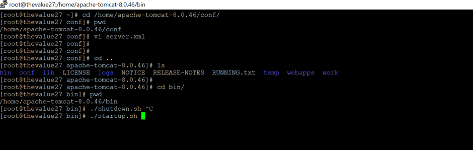 - vi server.xml : server.xml로 이동해서 vi 편집기사용