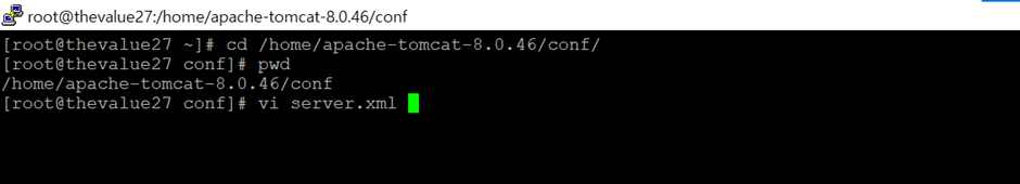 server.xml로 이동해서 vi 편집기사용 : vi server.xml